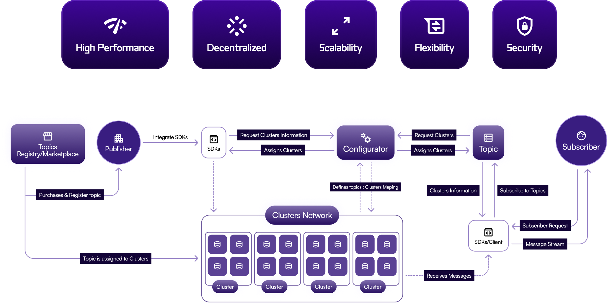 * **Configurators:** Intelligent agents responsible for mapping topics to clusters based on load balancing, network latency, and security considerations. They utilize a distributed algorithm to achieve consensus on topic-to-cluster assignments.